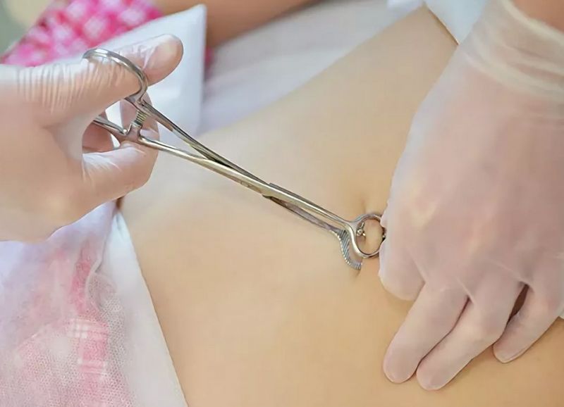 Процесс прокалывания пупка